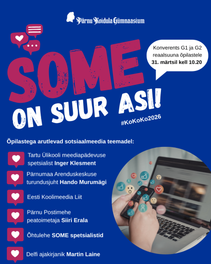 Teisipäeval, 31. märtsil toimub Pärnu Koidula gümnaasiumis iga-aastane õpilaskonverets KOKOKO, mis kannab sel aastal pealkirja "SOME on suur asi!".