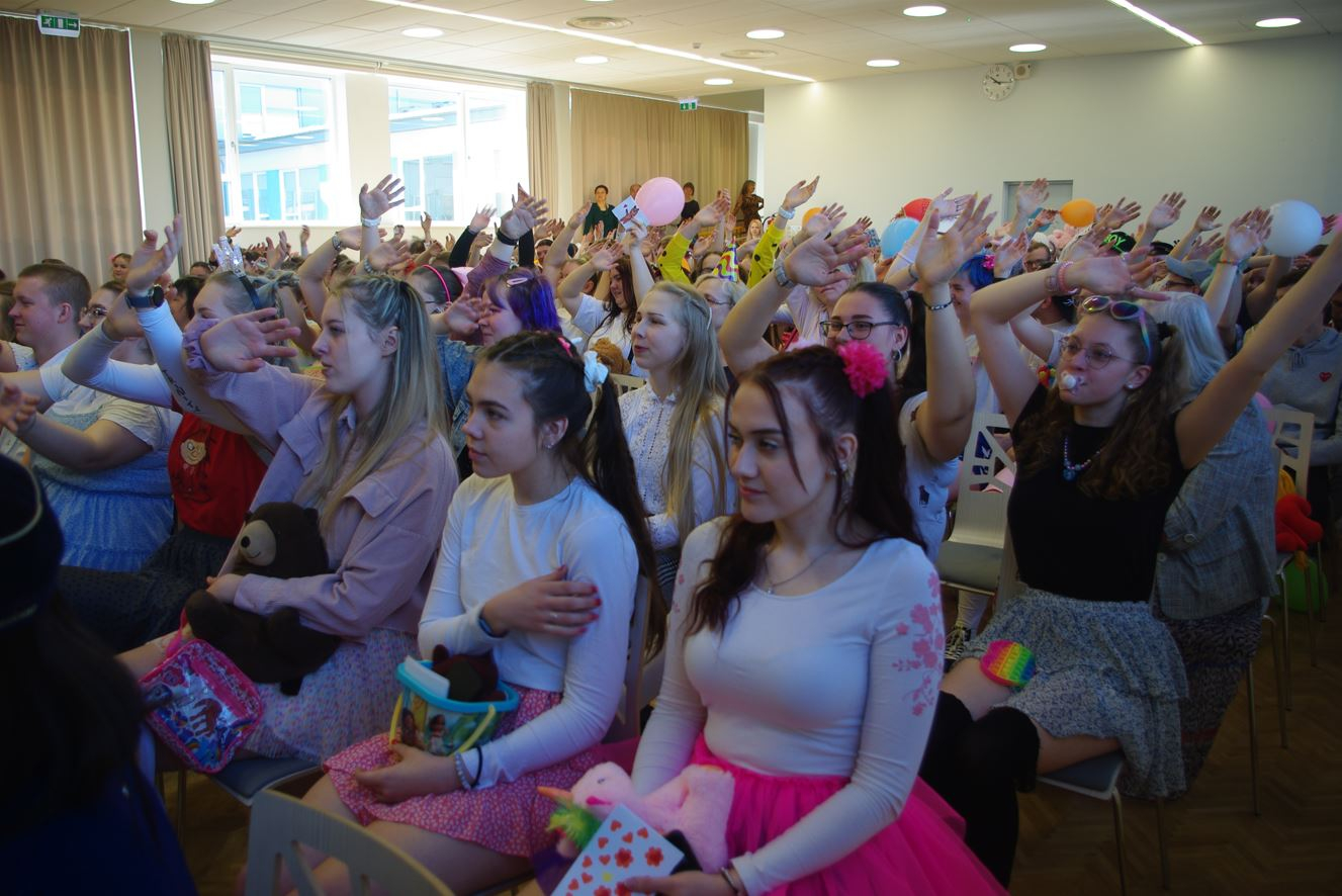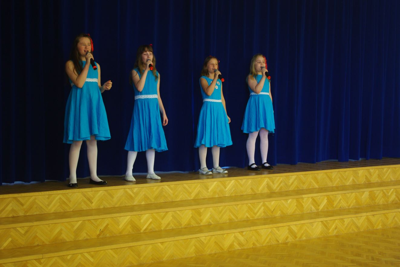 Aktus jätkus sama meeleolukalt nagu oli alanud. Mai Kooli 1. klassi lapsed esitasid kaks tantsu “Päikesejänkud” ja “Kolme paari” (juhendaja Ruth Vaiksaar). Viimase etteaste ajal kutsusid väikesed külalised kaasa tantsima ka meie kooli abituriente. Tantsu lõppedes jagasid lapsed G3 õpilastele omatehtud kaarte armsate soovidega edaspidiseks. Seejärel esinesid Tähekillud lauludega “Kõigi laste töö”, “Käsikäes”, “Sõbrad nii ju teevadki” (juhendaja Margrit Kits). Esitused olid kaasahaaravad ning lõbusad.