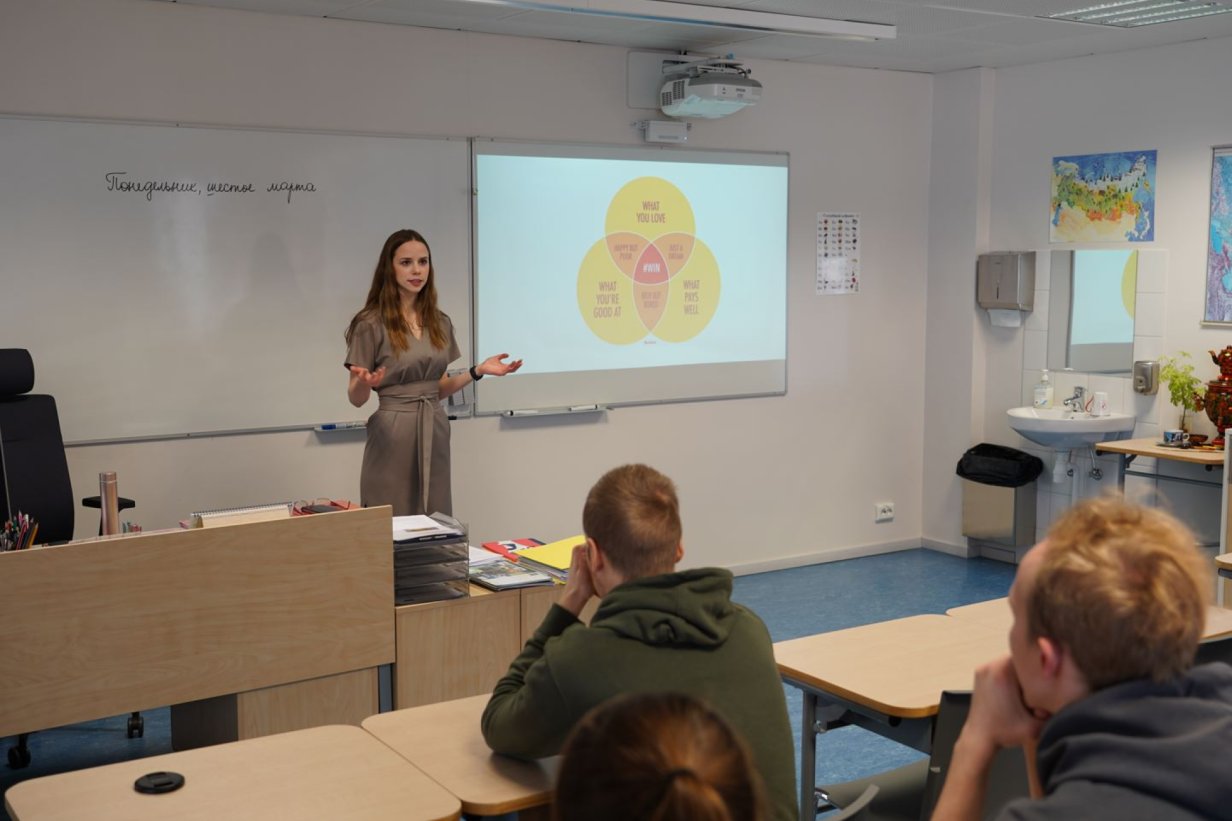 Täna käis meie kooli õpilastega kohtumas vilistlane, jurist Madlenne Timofejev, kes töötab nüüdseks juristina ühes Eesti tippadvokaadibüroos TRINITI. Ta abistab advokaate äriõiguse valdkonnas ning IT-, lennunduse- ja energeetikaõiguses, keskendudes näiteks droone puudutavatele regulatsioonidele, andmekaitsele ja tuumaõigusele.