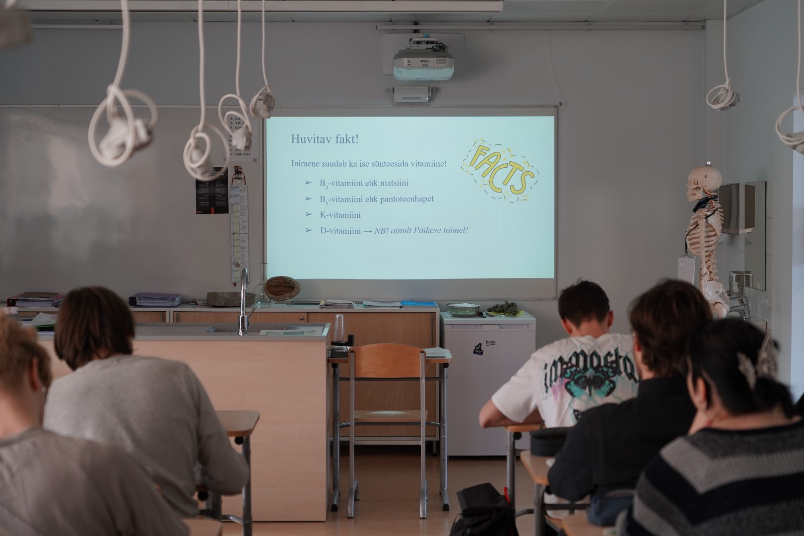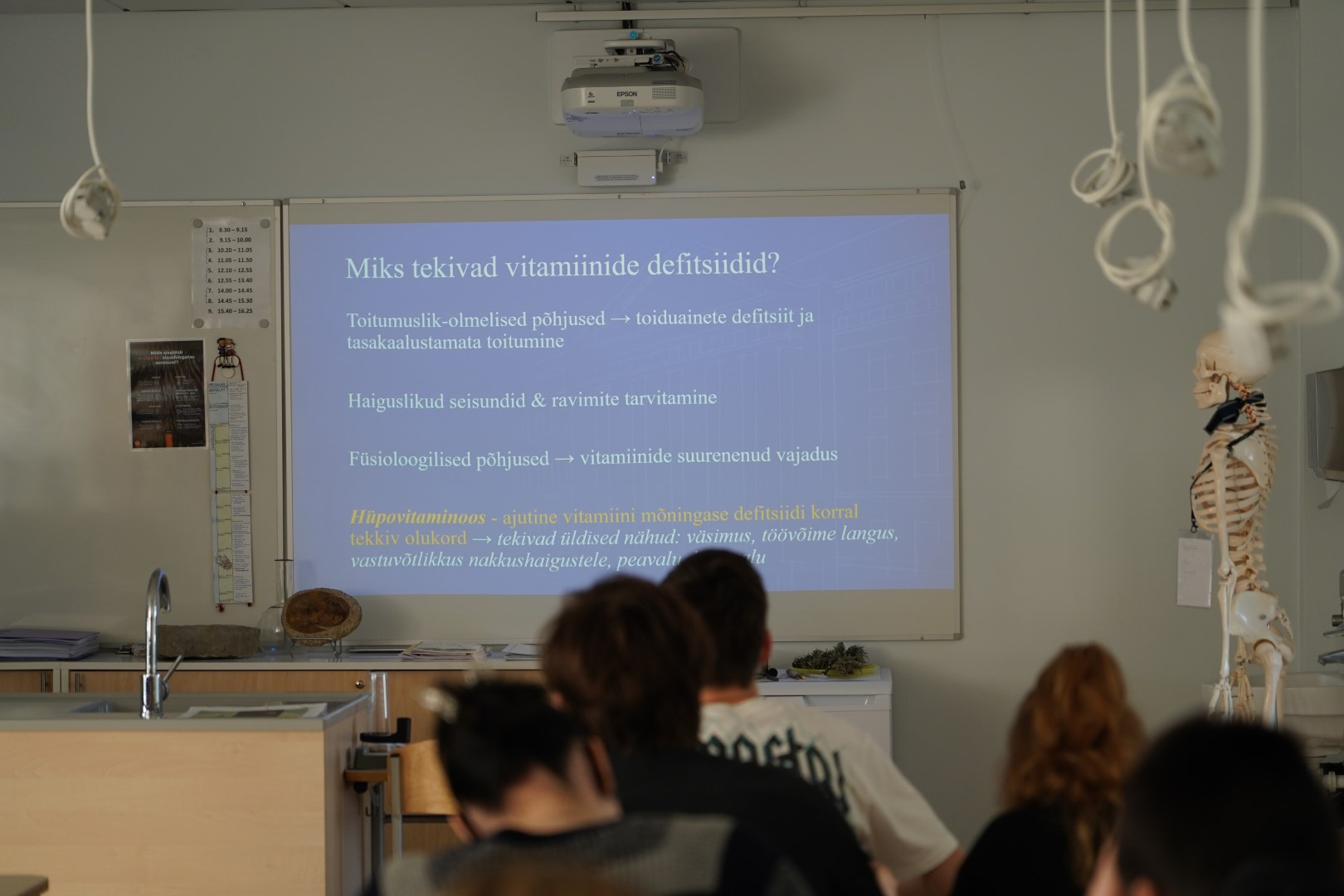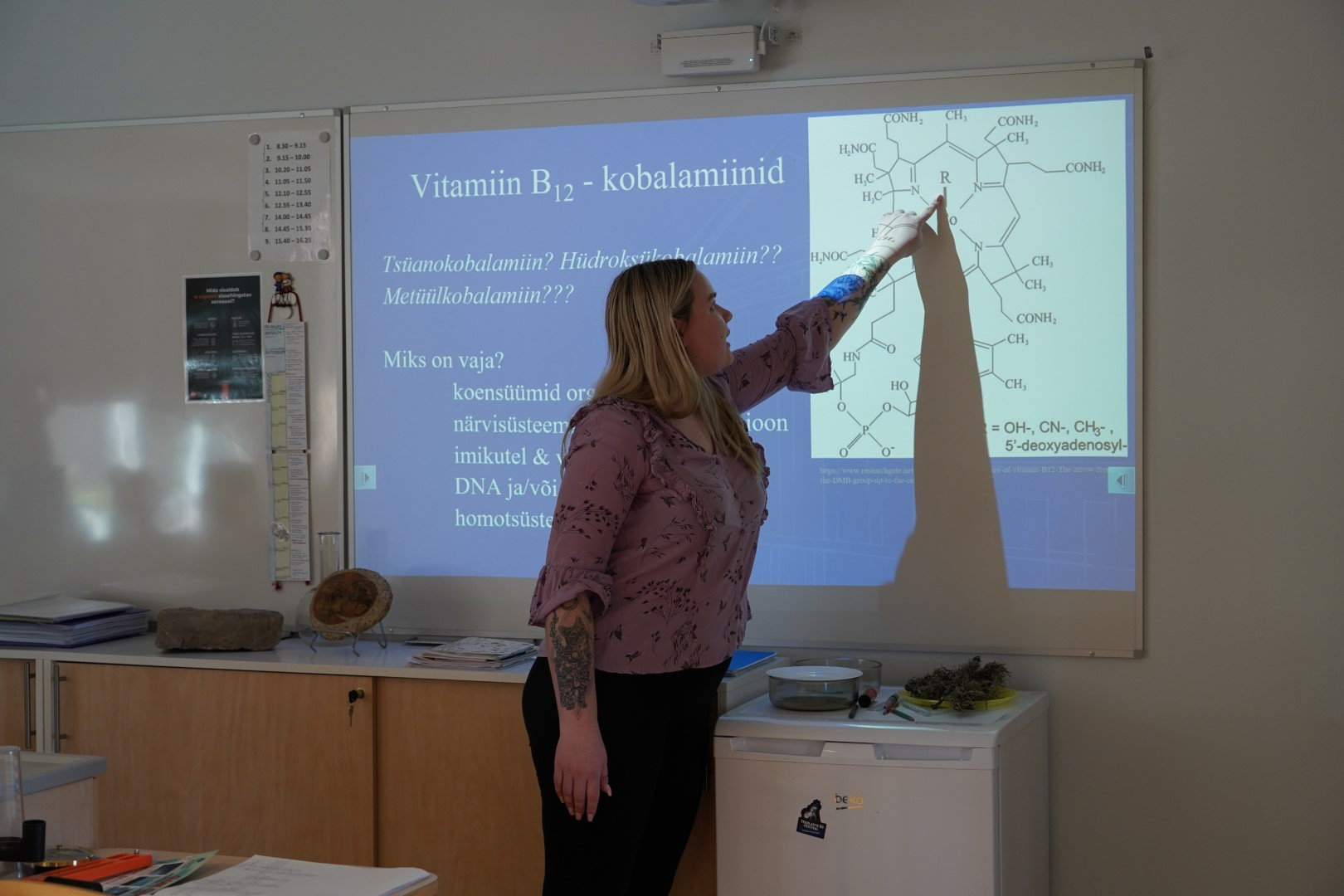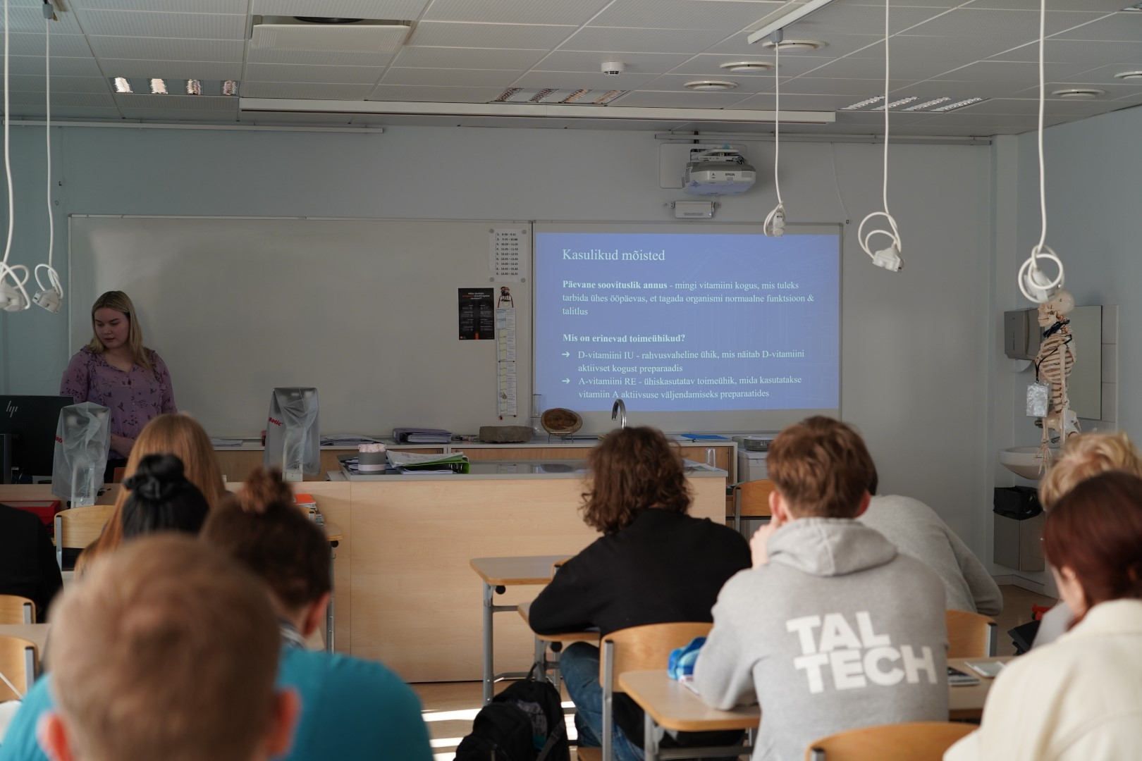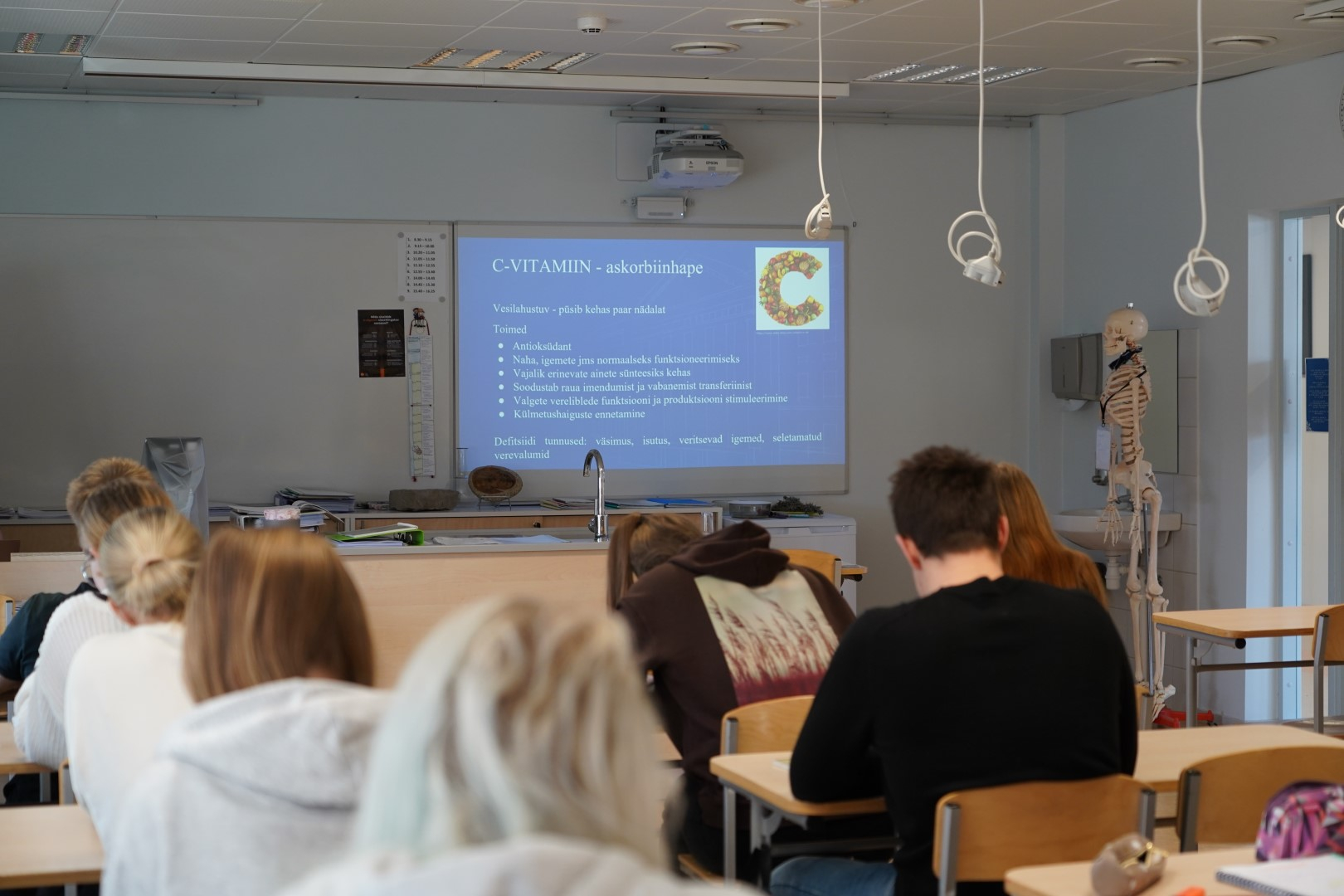 Täna kohtusid õpilased bioloogia tundides Kreete-Lisett Remmelgaga, kes on meie kooli loodussuuna vilistlane, Tartu Ülikooli III kursuse proviisori eriala üliõpilane. Lisaks ülikooliõpingute tutvustamisele viis ta läbi huvitavad tunnid teemal "Vitamiinid".