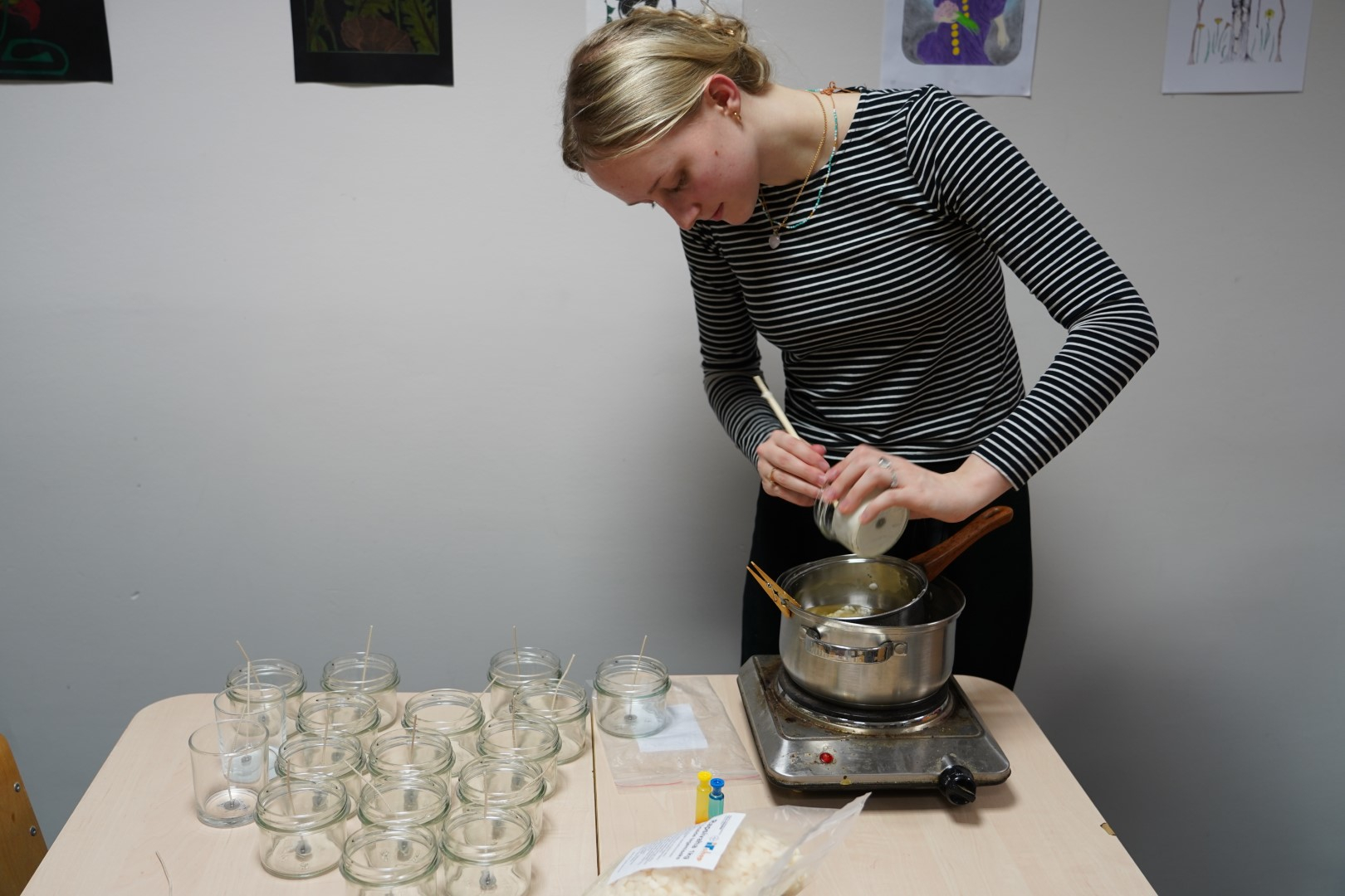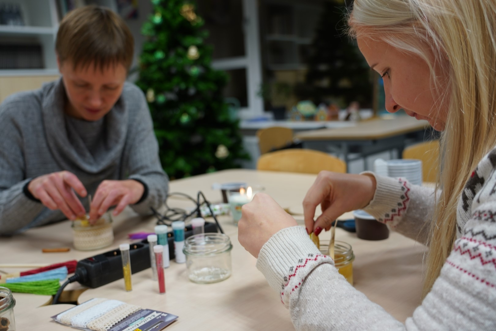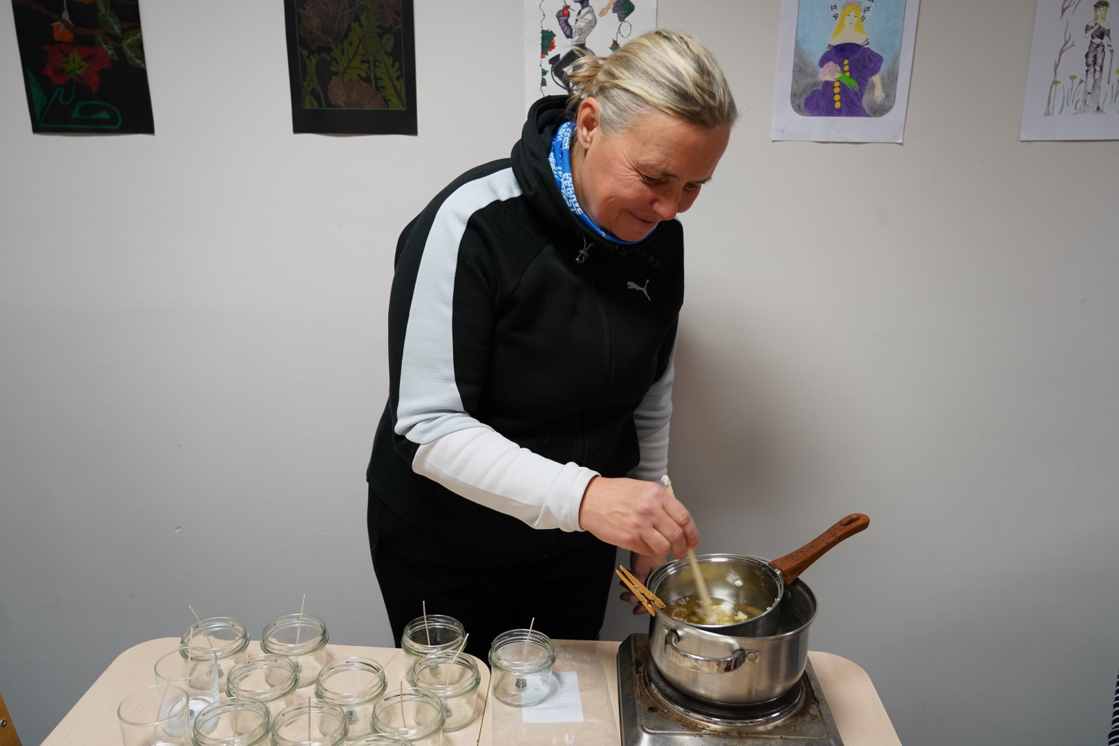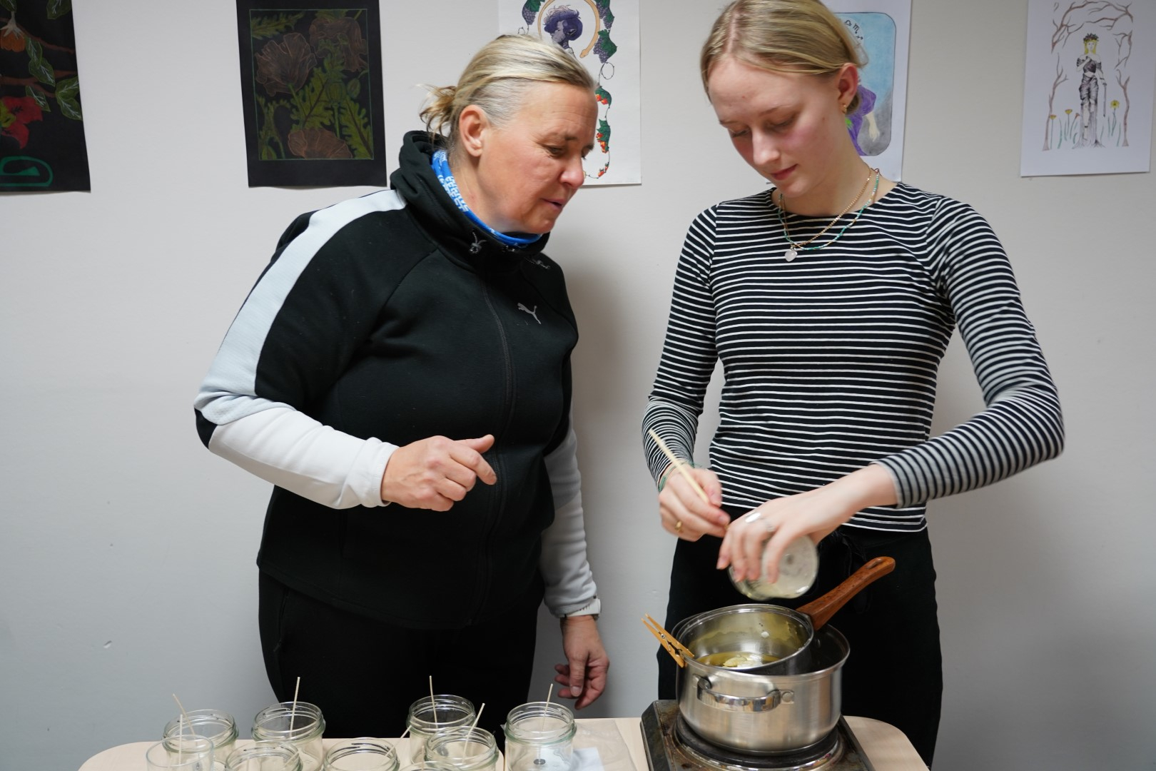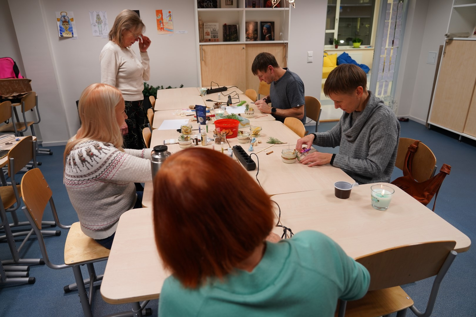 G2R2 õpilased Anna Fomina, Karin Pelt, Iiris Nairis ja Kaisa Kannus korraldasid õpetajatele põneva küünalde valmistamise töötoa.