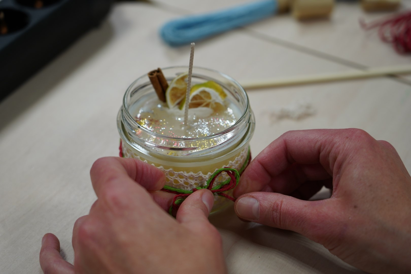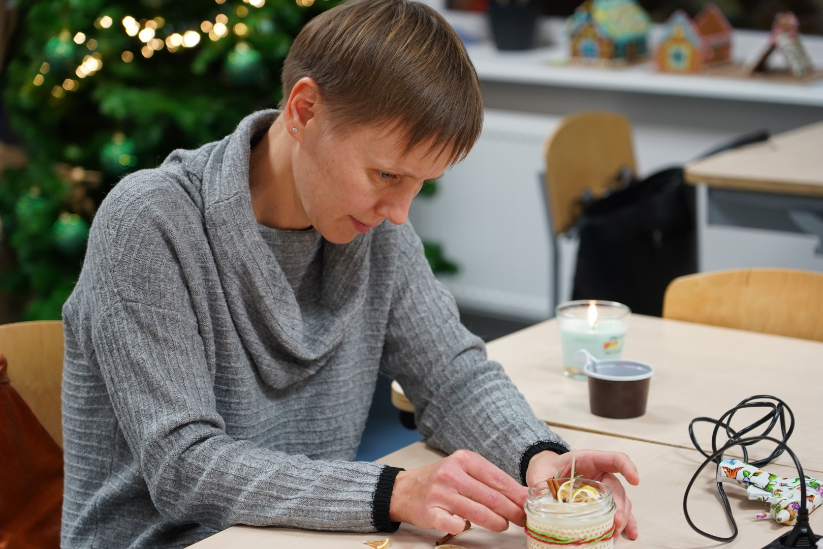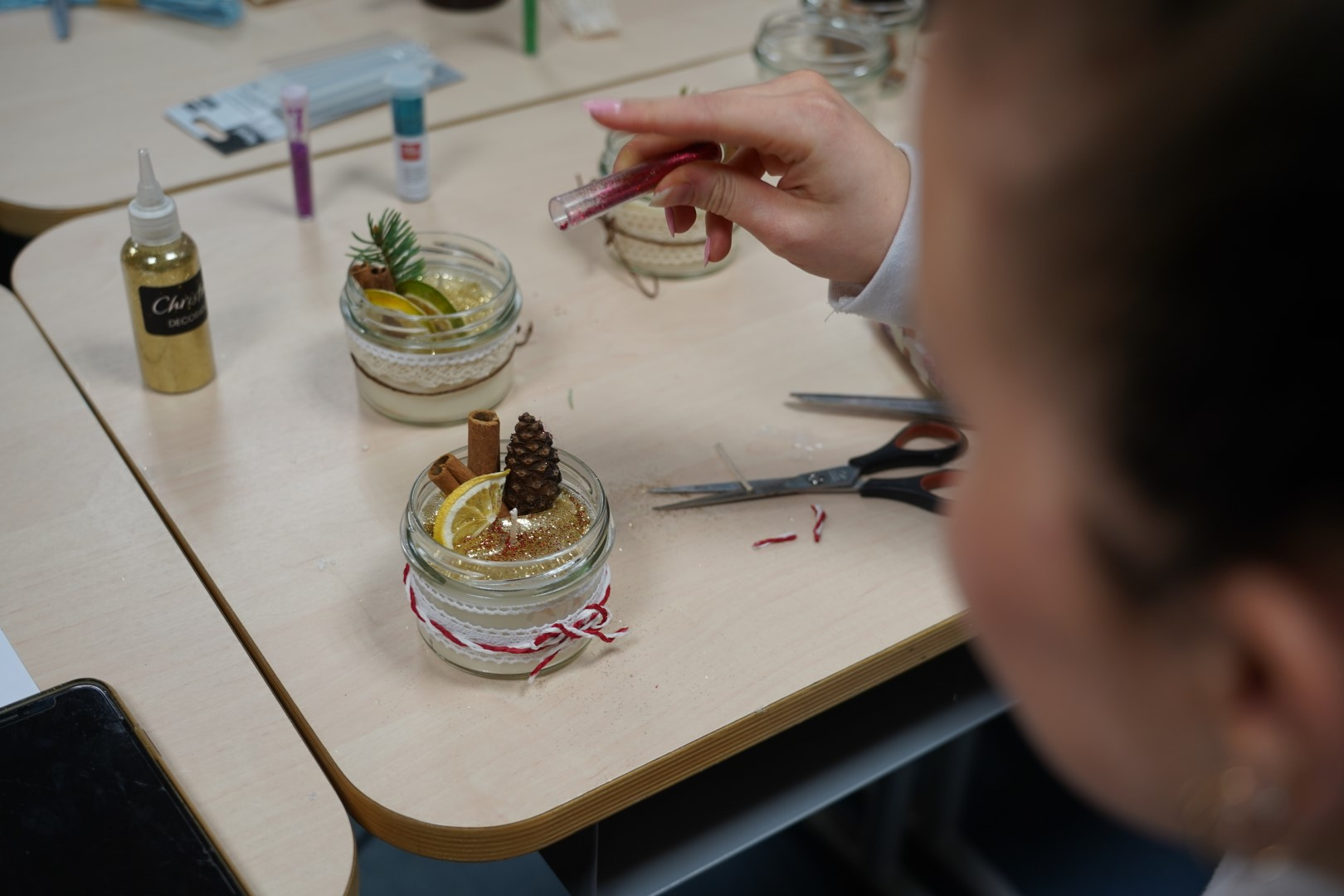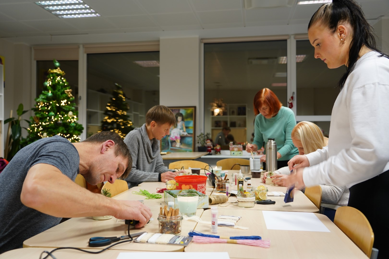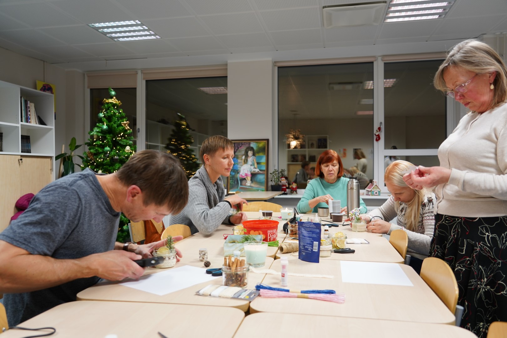 G2R2 õpilased Anna Fomina, Karin Pelt, Iiris Nairis ja Kaisa Kannus korraldasid õpetajatele põneva küünalde valmistamise töötoa.