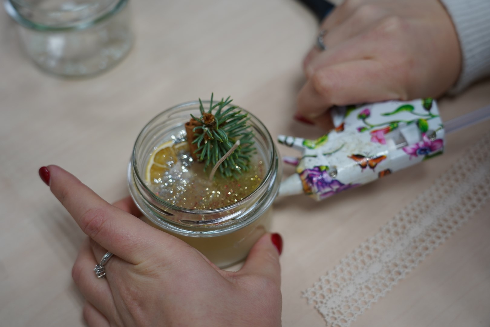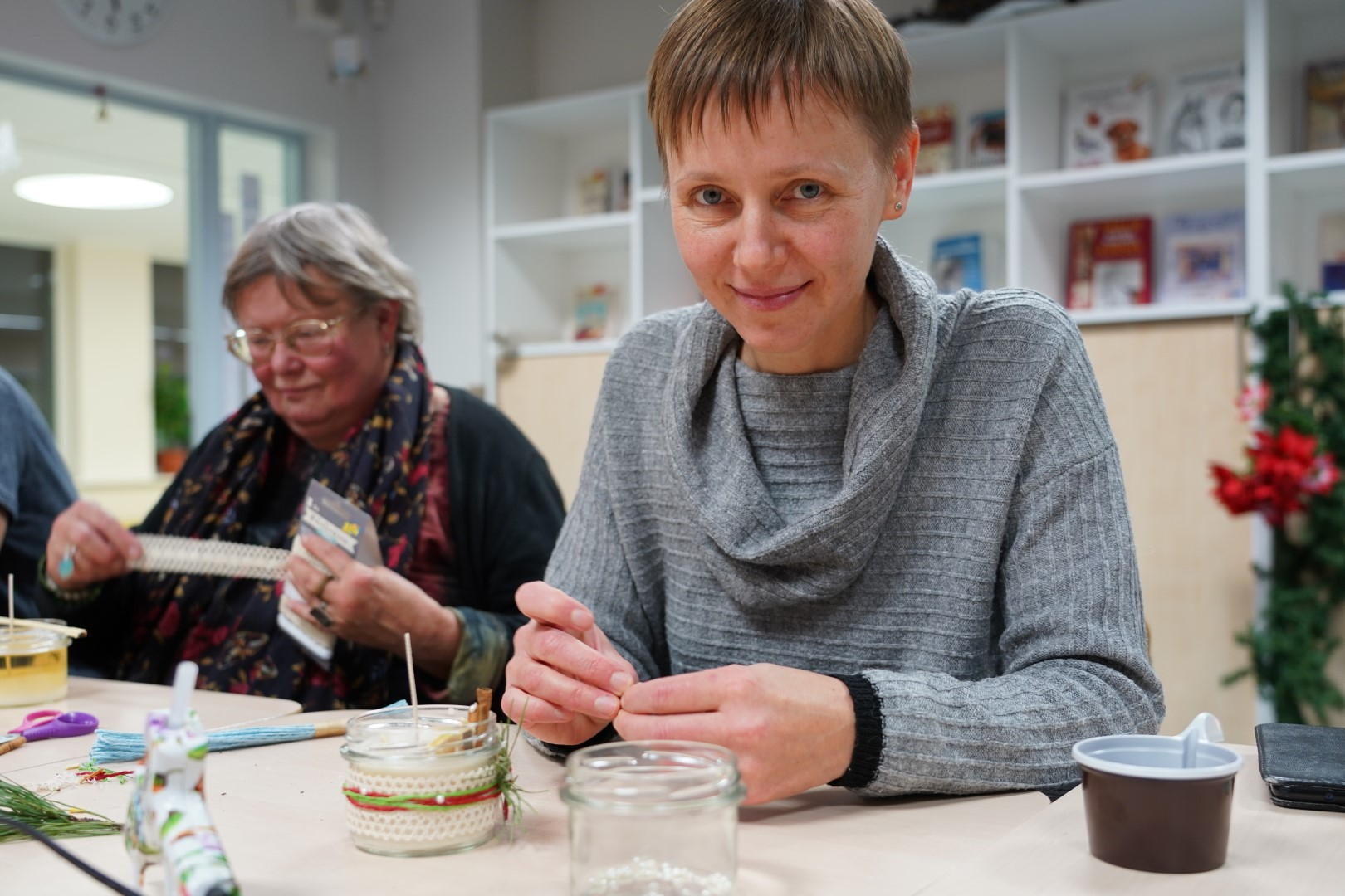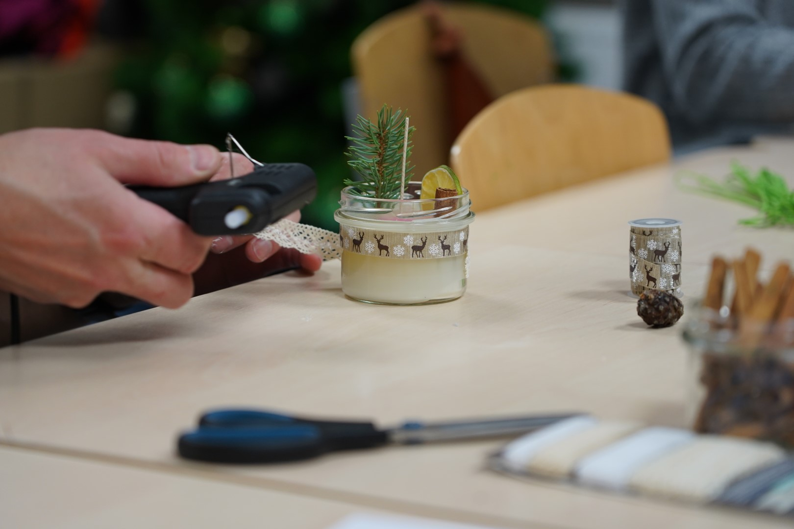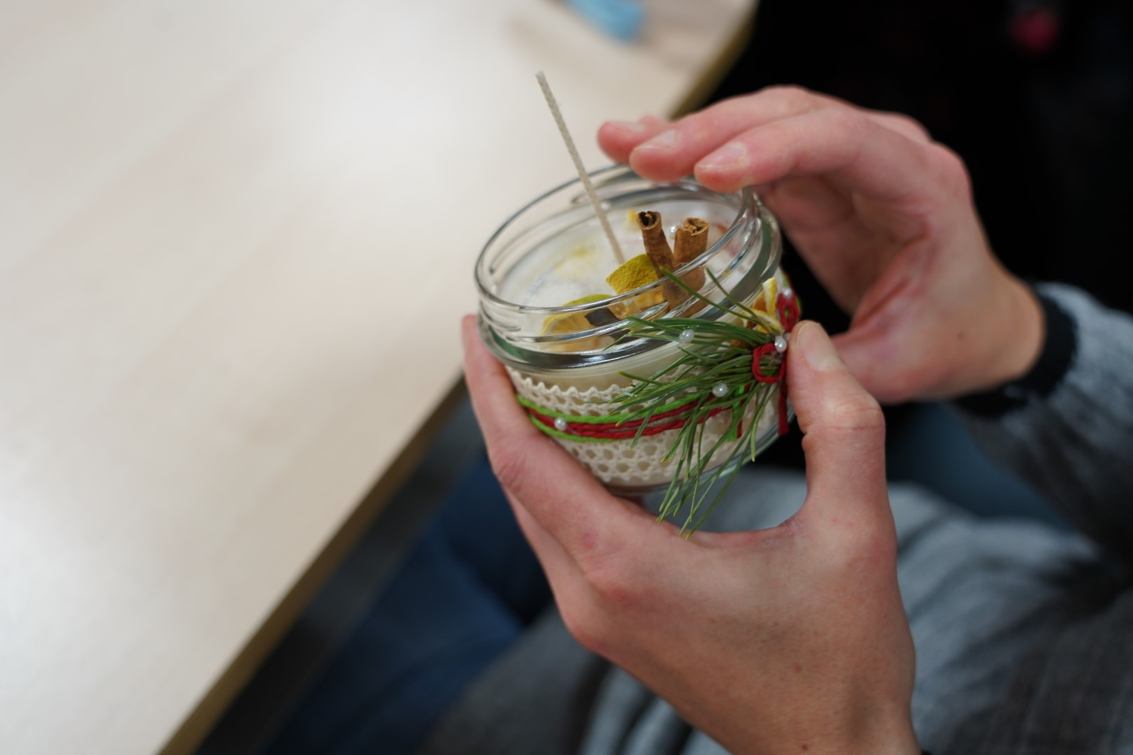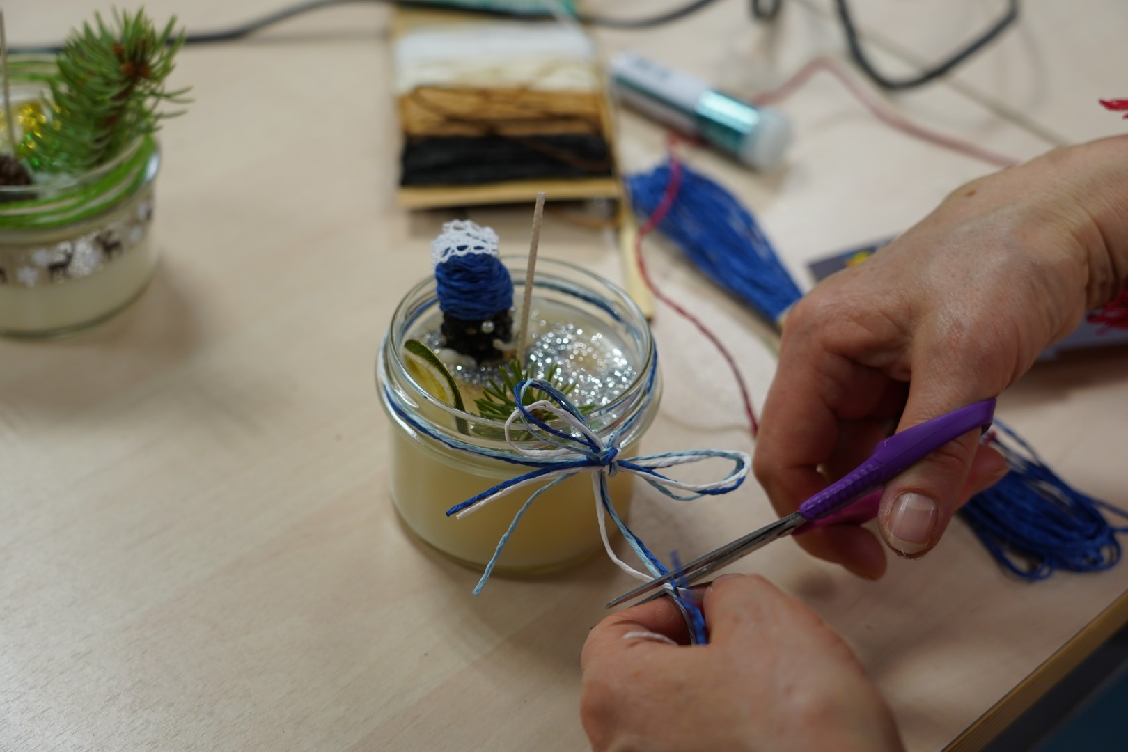 G2R2 õpilased Anna Fomina, Karin Pelt, Iiris Nairis ja Kaisa Kannus korraldasid õpetajatele põneva küünalde valmistamise töötoa.
