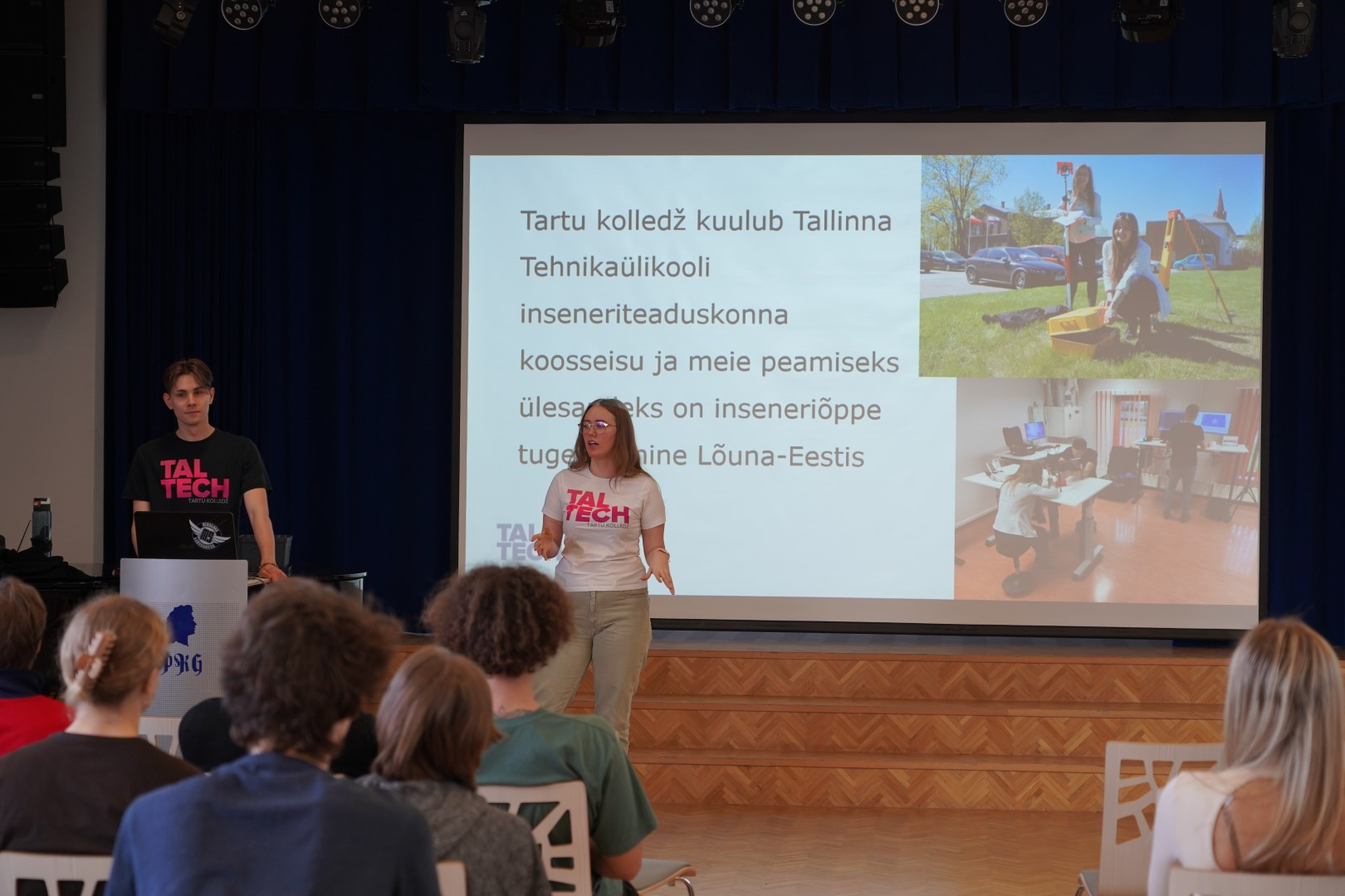 Täna käisid G2 klassidele õppimisvõimalusi tutvustamas Tallinna Tehnikaülikooli Tartu Kolledži tudengid Deloona Hook ja Kristo Peetermann.
