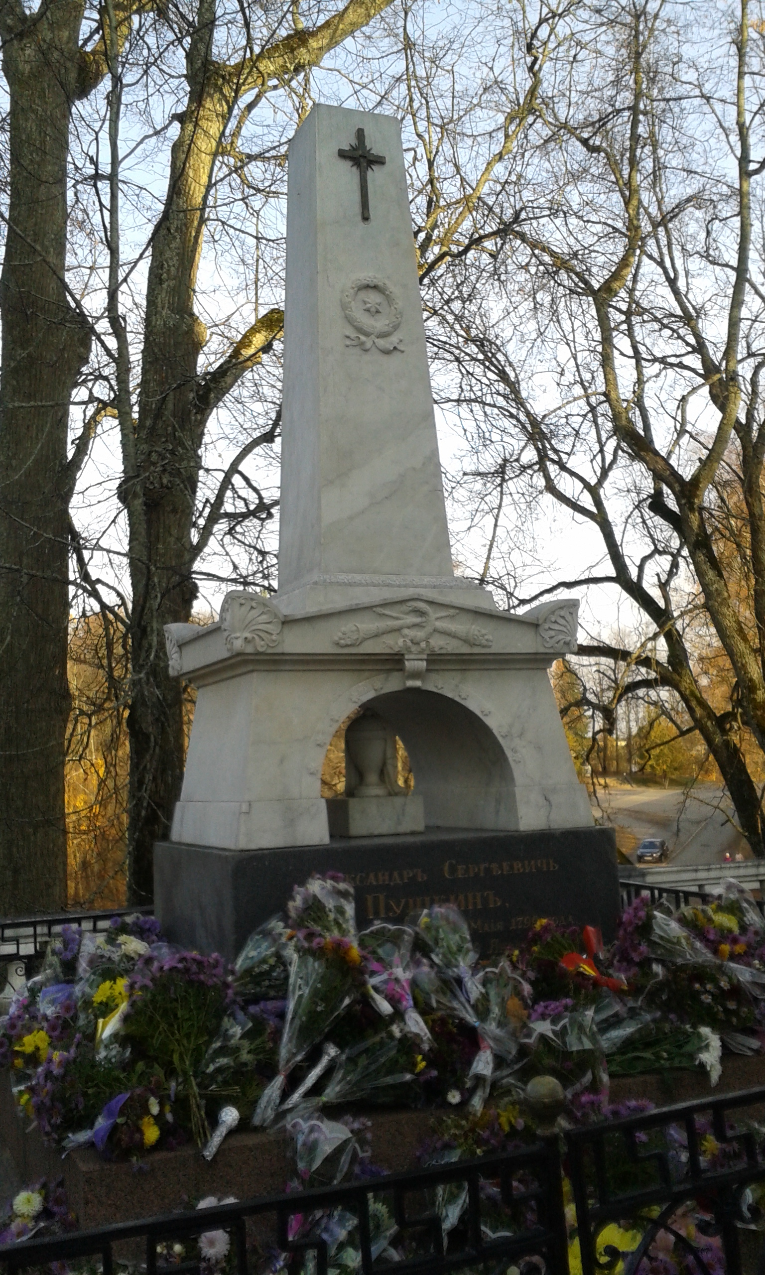 Alates 1911. aastast on avatud esimene Puškini muuseum. Jalutasime poeedi vanaisa poolt rajatud mõisapargis, seisatasime pärnaalleel, mida rahvasuus kutsutakse Anna Kerni alleeks. Anna Kern külastas Mihhailovskojet juunis 1825. Puškin pühendas talle kauni luuletuse, mida kohapeal ka kuulsime. Ekskursiooni lõpetasime Svjatogorski kloostris, kuhu poeet on maetud ja samuti tema pere liikmed. G2BK õpilased Andrei ja Karina lugesid luuletuse „Exegi monumentum“, millega Puškin on end jäädvustanud sajanditeks rahva hinge. Hauale said asetatud ka mitmed lillekimbud.