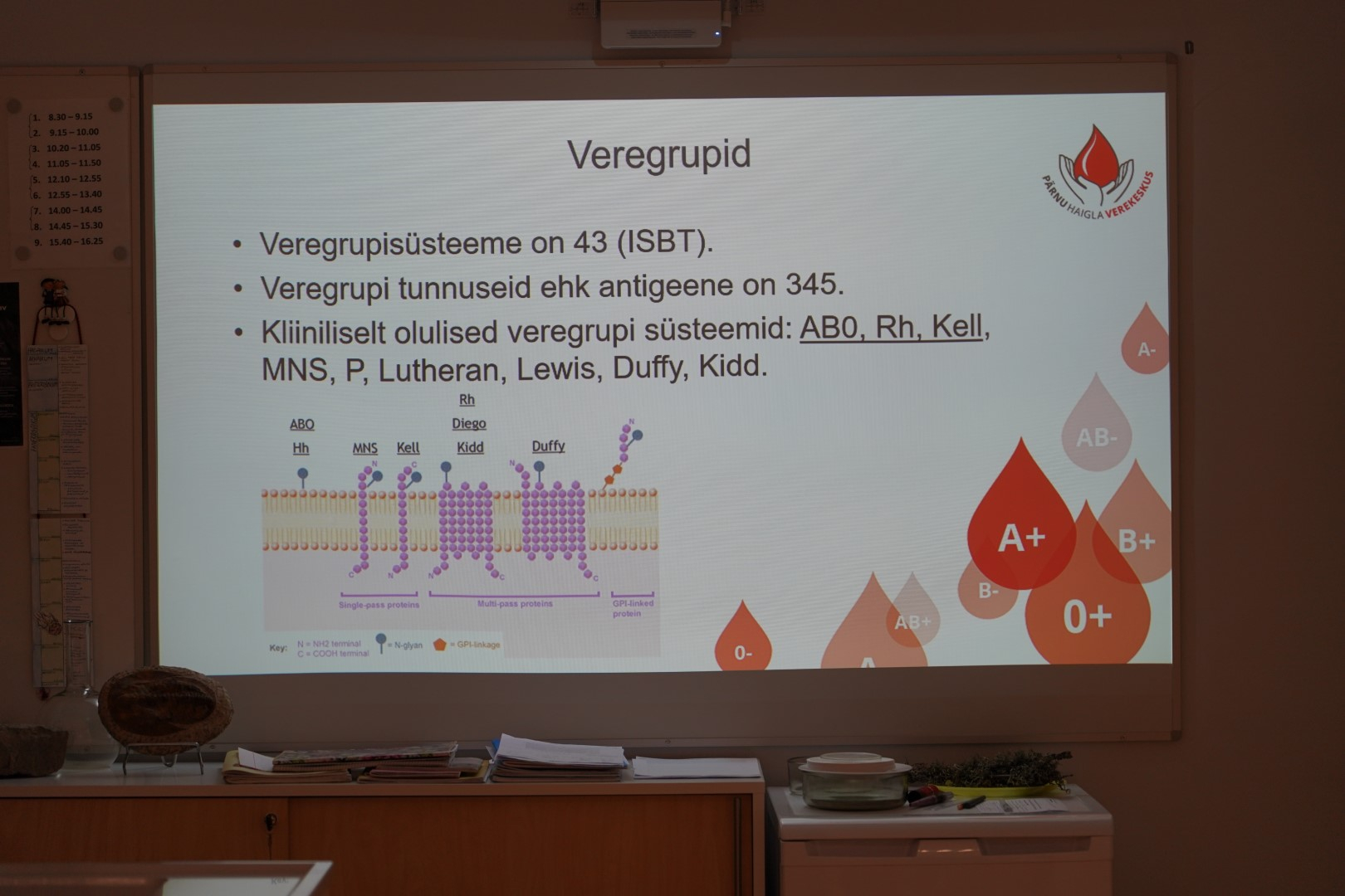 Täna käis G2A klassile veredoonorlusest rääkimas PKG loodussuuna vilistlane, Pärnu Haigla Verekeskuse kvaliteedijuht Rahel Reimal. Soovijatel oli võimalik määrata ka oma veregruppi.