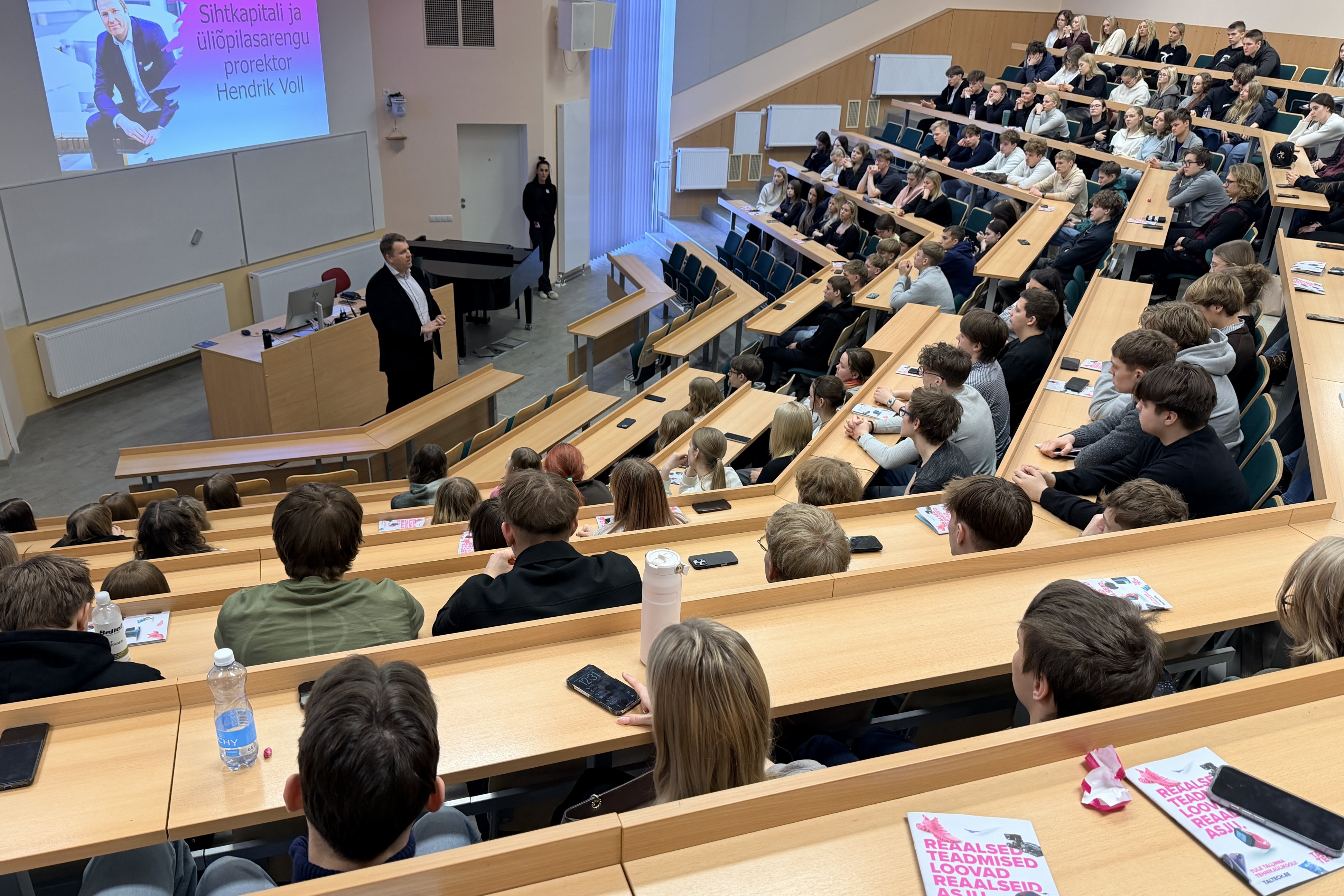 Õpilasi tervitas TalTechi sihtkapitali ja üliõpilasarengu prorektor Hendrik Voll ning koolikoostöö ja vastuvõtuturunduse peaspetsialist Keiu Org, kes tutvustas õpilastele ülikooli õppekavasid, sisseastumisvõimalusi ja tudengielu.
