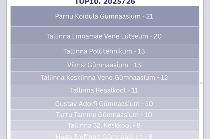 Tehnikaülikoolis on viis teaduskonda ja Hendrik Voll tegi ülevaate, mis koolidest milline teaduskond oma õpinguteks valiti. Pärnu Koidula gümnaaisum on number üks igas teaduskonnas välja arvatud Mereakadeemia.